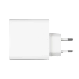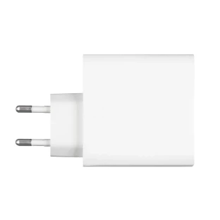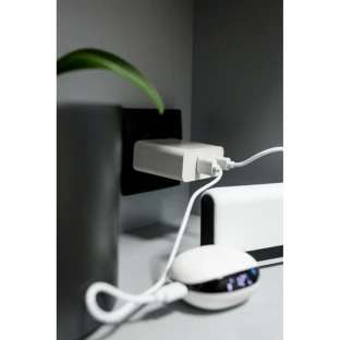 Ładowarka ścienna z wyjściem USB oraz 2 wyjściami USB typu C, moc całkowita do 65W, wejście 100-240V, wyjście USB typu C 5-15V/3A, wyjście USB 5-12V/1.5-3A, do użytku wewnątrz pomieszczeń