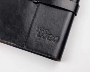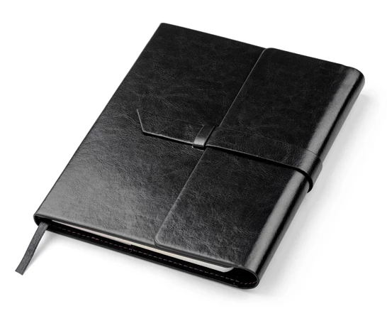 Miejsce na 3 wizytówki, długopis oraz pamięć USB. Okładka nie jest umocowana na stałe do bloku notesu, tylko nasuwana na pierwsze kartki, co daje możliwość wymiany notesu.