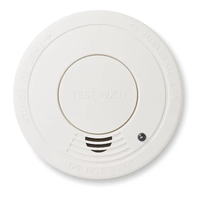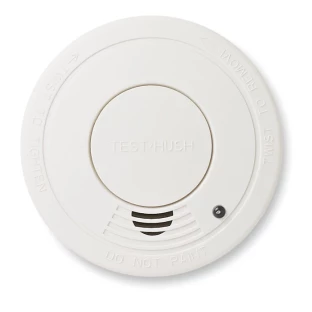 Wykrywacz dymu w plastikowej obudowie. Czerwona lampka świeci się, gdy urządzenie pracuje. W komplecie 2 śrubki do montażu. 1 bateria 9V dołączona.